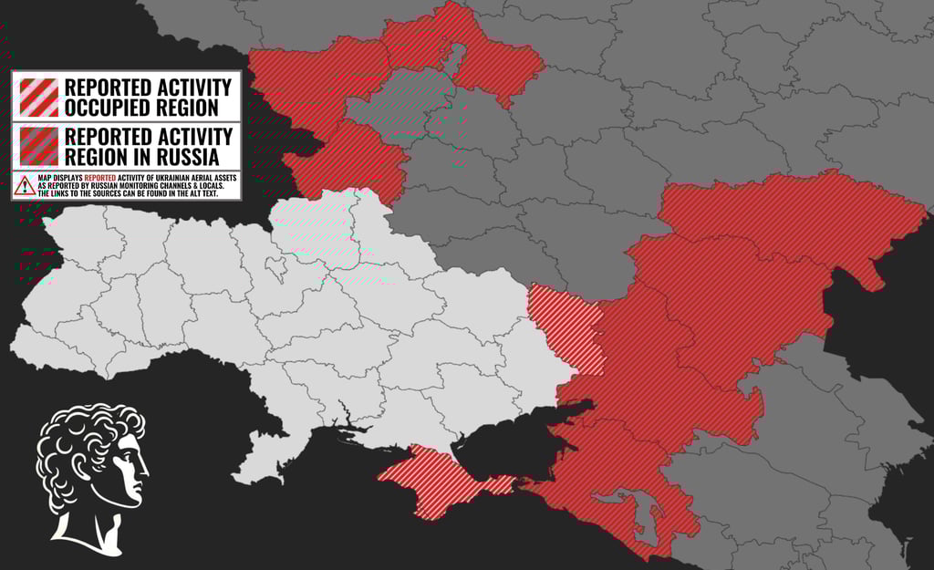 Ukraine has launched large-scale strikes across Russia and occupied territories, with local monitoring channels reporting aerial activity in the Bryansk, Smolensk, Moscow, Rostov, Krasnodar, Volgograd and Saratov regions as well as in occupied Crimea and Luhansk.